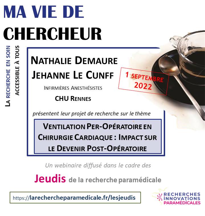 Le 1er septembre 2022, Nathalie Demaure et Jehanne Le Cunff ont présenté leur projet de recherche sur le thème de la Ventilation Per-opératoire en Chirurgie Cardiaque : Impact sur le Devenir Post-Opératoire.